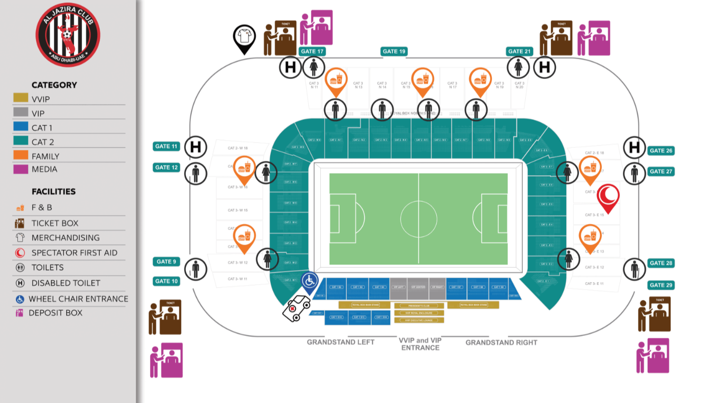 يوجد 20 أكشاك طعام داخل ملعب كرة القدم ، اعتمادًا على أهمية المباراة نفتح عدد لكشك.