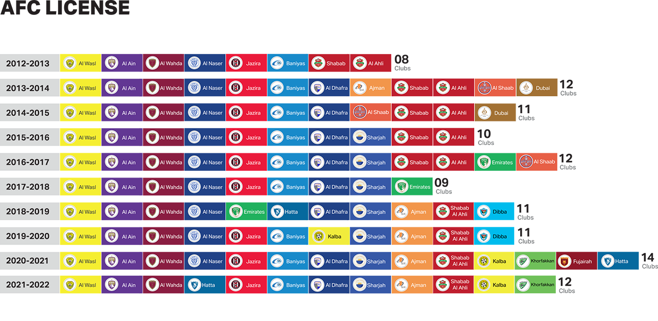 First implemented for the 2013 season, the UAE Club Licensing Regulations comes into force on its approval by the UAE Pro League (PLC, previously) Executive Committee and was implemented for the main purpose of participation in AFC Club Competitions.