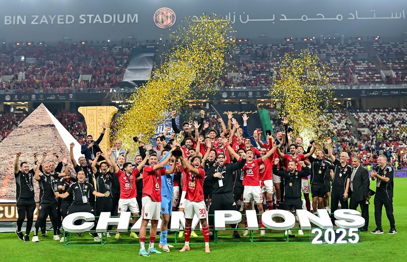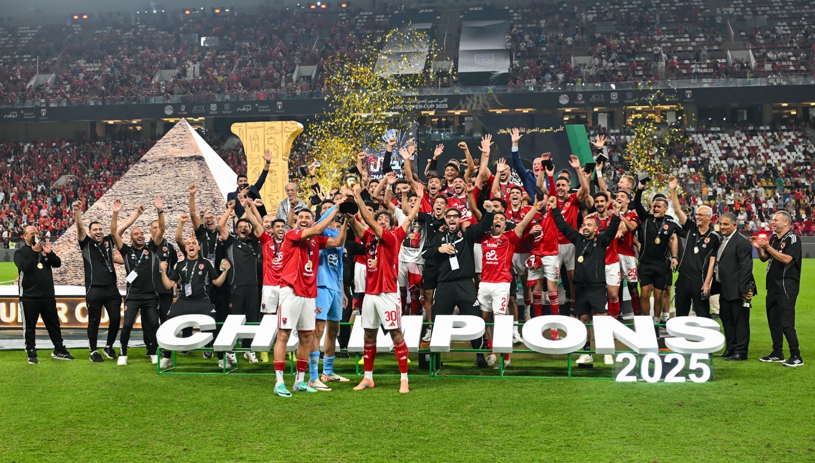 تُوج فريق الأهلي بلقب كأس السوبر المصري للأندية الأبطال 2025، وانطلقت الاحتفالات في ملعب محمد بن زايد، عقب صافرة نهاية مباراة الأهلي والزمالك في المباراة النهائية، والتي انتهت لصالح المارد الأحمر بهدفين دون رد.